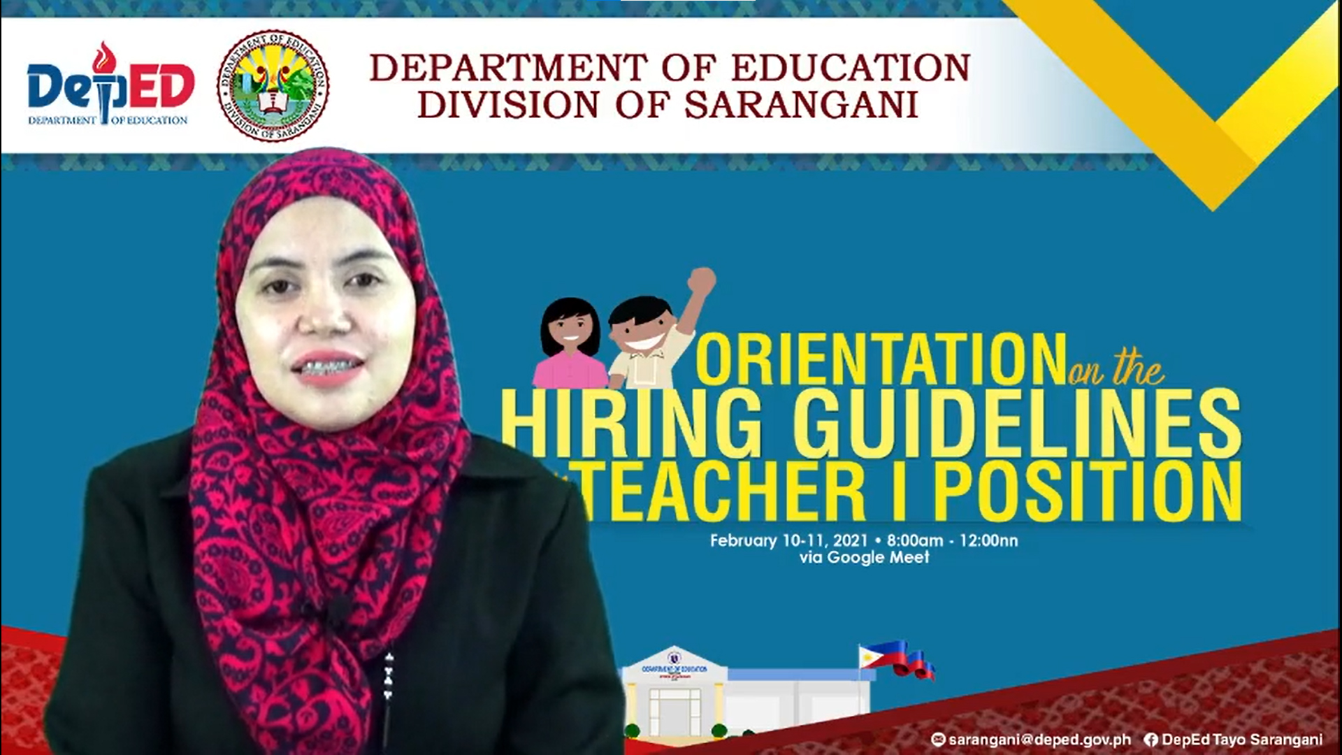 In order to provide applicants with relevant and accurate information on the hiring guidelines of the Department of Education for Teacher 1 position, as well as on hiring IP and senior high school teachers, DepEd Sarangani conducted a virtual orientation on February 10 and 11, 2021.