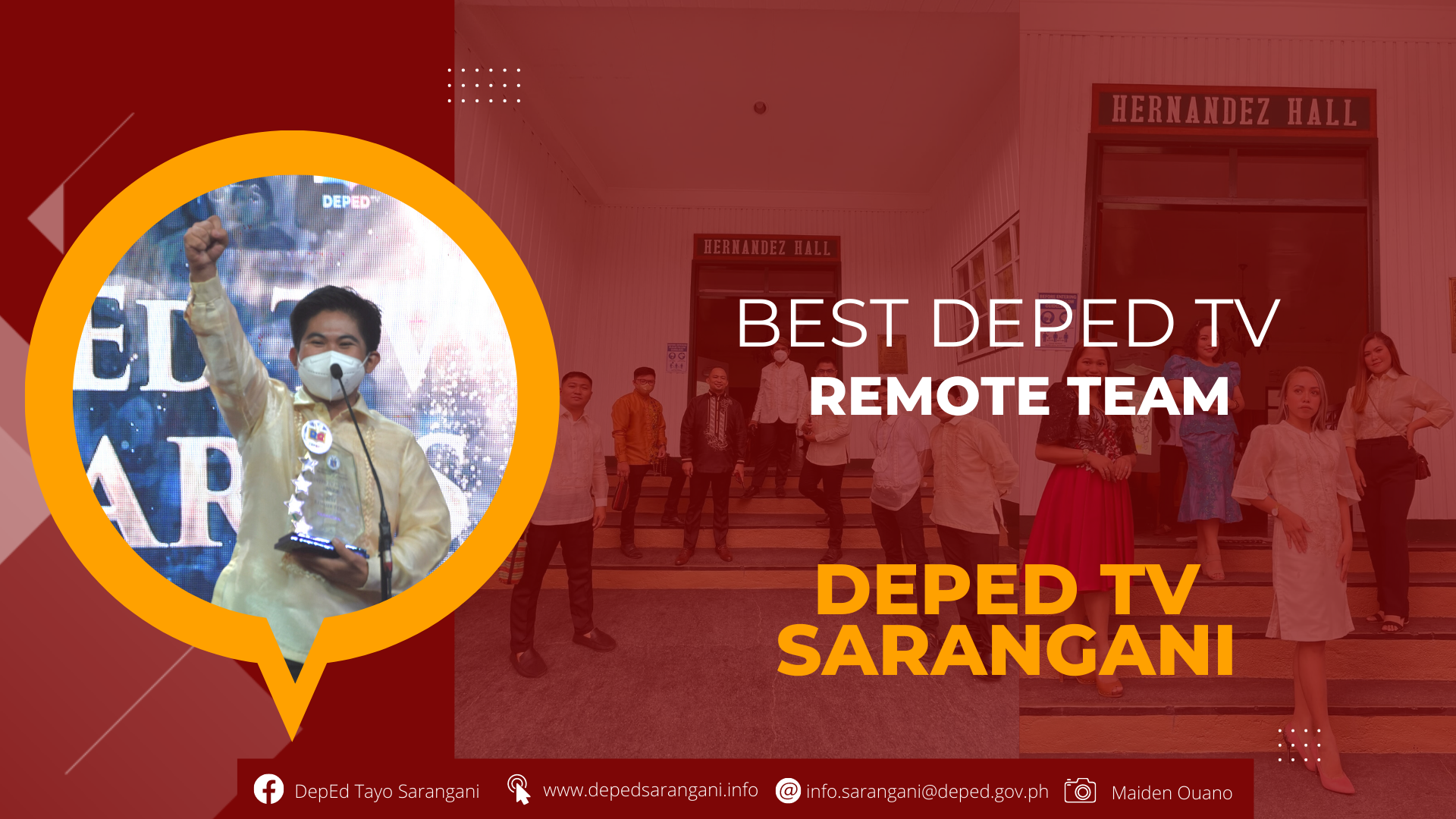 Because of their contribution to DepEd TV, DepEd TV Sarangani Remote Team was recognized as one of the Best Remote Teams nationwide.