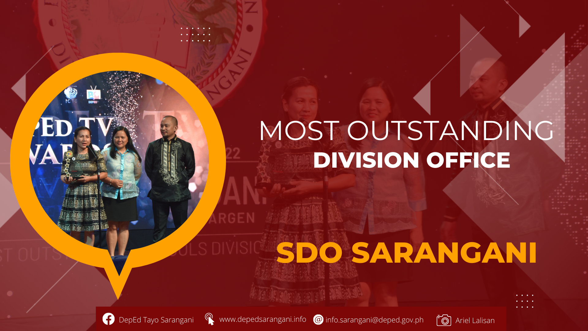DepEd Sarangani took home the honor as the Most Outstanding Division Office for DepEd TV due to the support it provided in the production and dissemination of DepEd TV episodes in various teaching modalities.