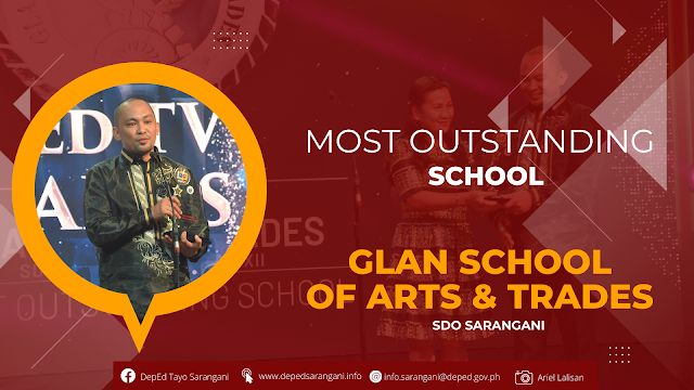 Meanwhile, Glan School of Arts and Trades (GSAT) was named Best School for DepEd TV as most of the members of the DepEd TV Sarangani remote team are from GSAT and the school supported the DepEd TV team by providing a studio that the team used for the production of DepEd TV episodes.