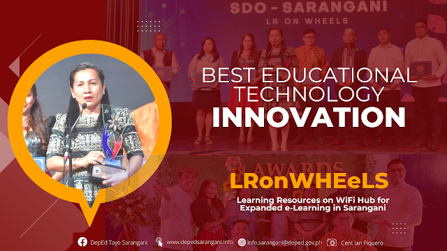 The Sarangani division’s contribution to DepEd TV was noted due to its innovation LRonWHEeLS or Learning Resources on WiFi Hub for Expanded e-Learning in Sarangani, where DepEd TV episodes are used as learning tools, making them even more interactive with the help of H5P technology.