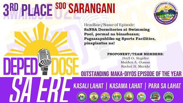 Sarangani won the top prize in the DepEd Dose sa Ere Midyear Awards 2022.