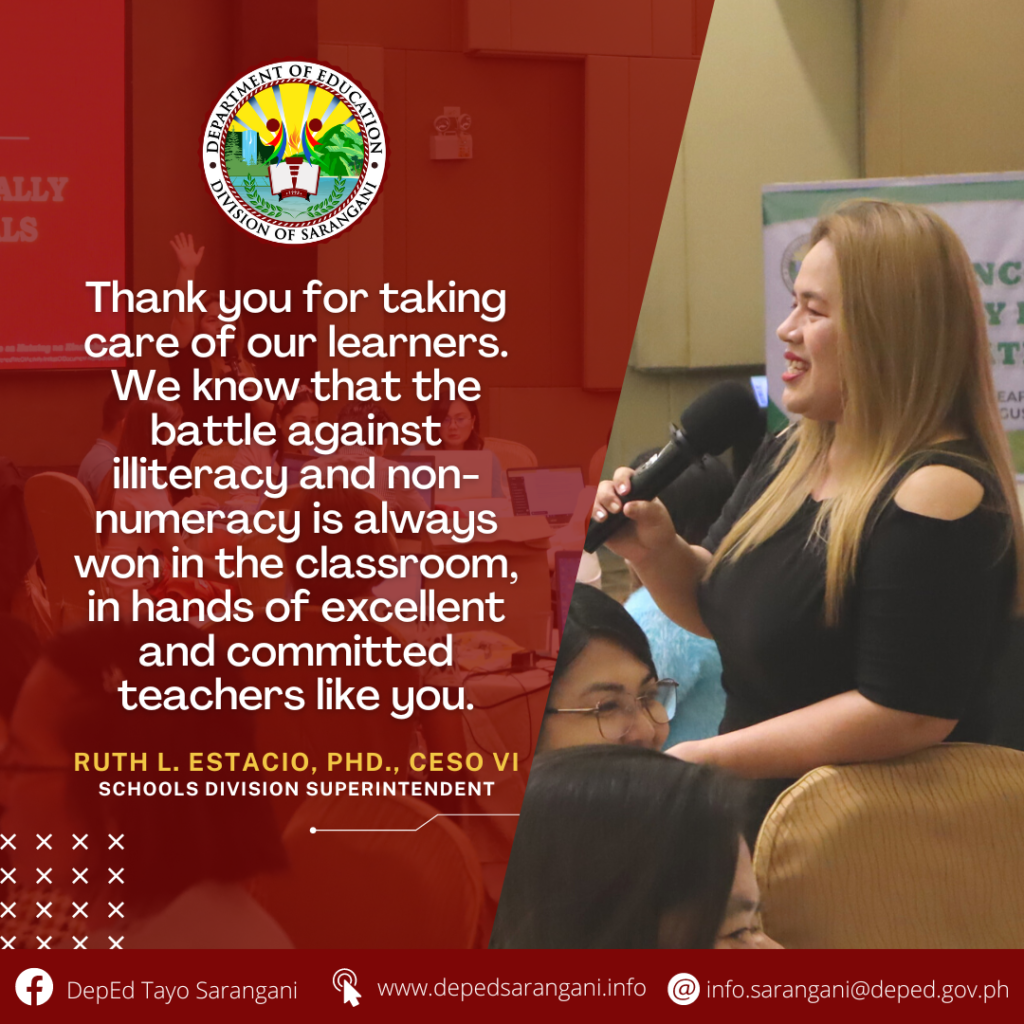 Schools Division Superintendent Ruth L. Estacio, PhD., CESO VI, extended her gratitude to the teachers for their efforts. She emphasized the significance of their work in improving the teaching materials available to educators in the Division of Sarangani.